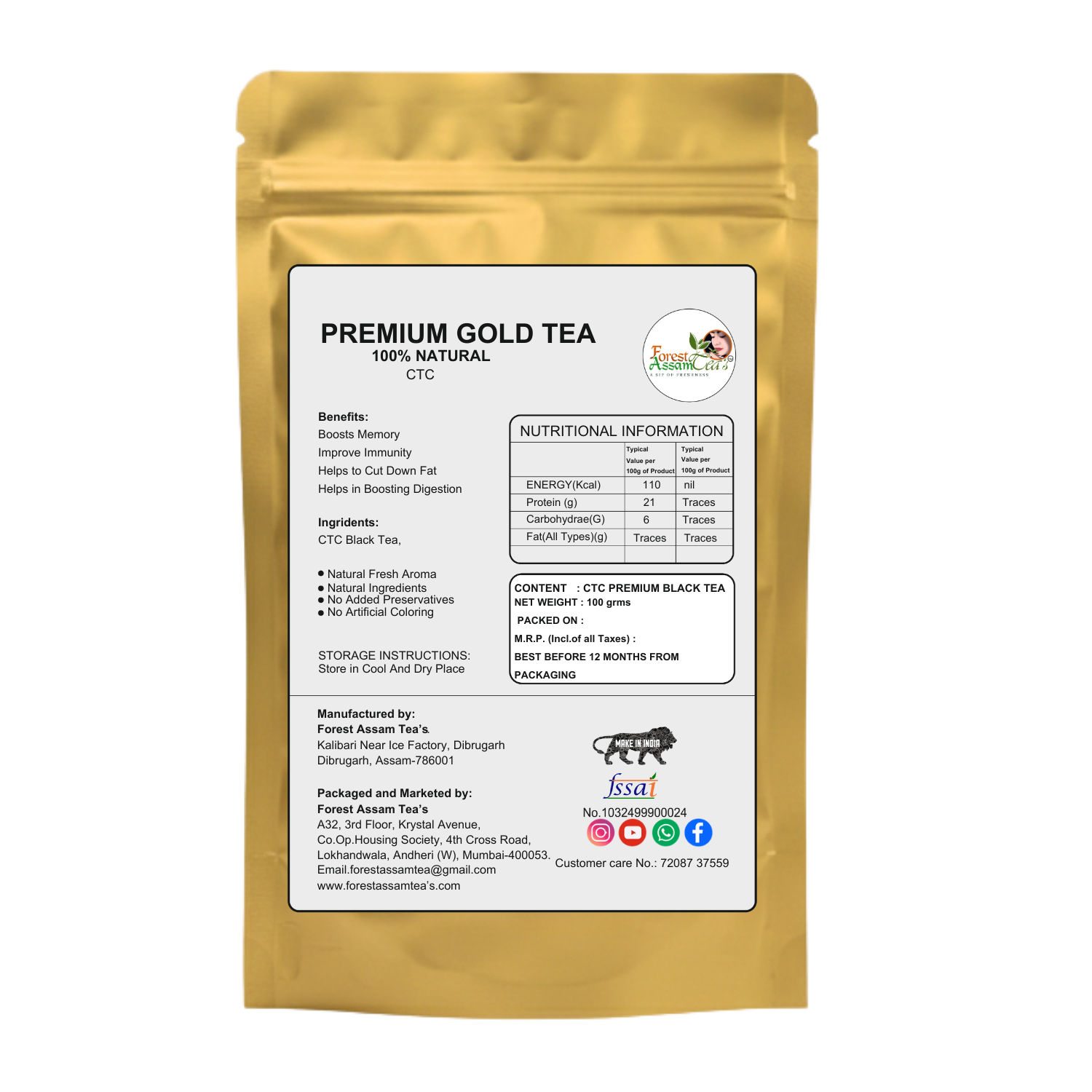 Best enjoyed with milk or as a strong black tea, Premium Gold CTC Tea is free from artificial flavors and additives, offering you an authentic Assam tea experience in every cup.